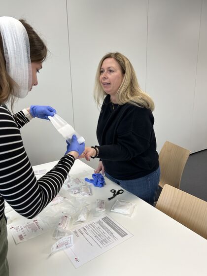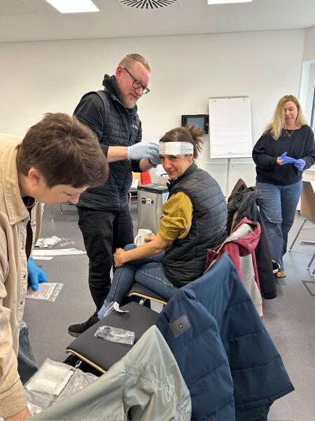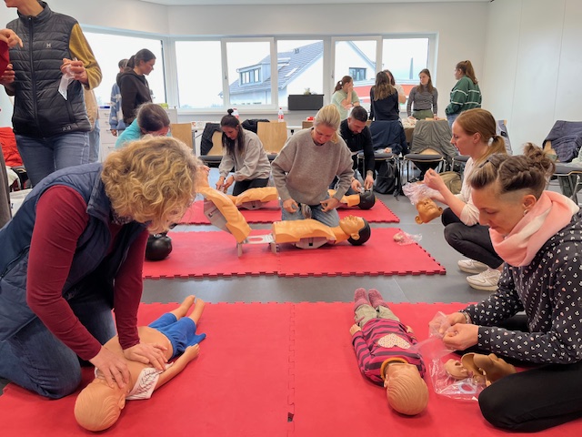Am Samstag, den 14. März 2026, fand beim DRK in Baltmannsweiler ein ganztägiger Erste-HilfeKurs für das gesamte Lehrerkollegium statt. Die Fortbildung bot eine sehr informative und praxisnahe Auffrischung rund um das Thema Erste Hilfe – mit besonderem Fokus auf Notfallsituationen bei Kindern. Im Laufe des Tages wurden verschiedene wichtige Themen behandelt. Dazu gehörten unter anderem typische Kinderkrankheiten, das richtige Verhalten in Notfällen, die Versorgung von Wunden sowie Maßnahmen zur Reanimation. Besonders wertvoll waren die zahlreichen Fallbeispiele aus der Praxis, die gemeinsam besprochen und teilweise auch praktisch geübt wurden. Dadurch konnten die Teilnehmerinnen und Teilnehmer ihr Wissen nicht nur erweitern, sondern auch bereits bekannte Inhalte wieder auffrischen und vertiefen. Der Kurs bot viele hilfreiche Anregungen für den schulischen Alltag und stärkte das Sicherheitsgefühl im Umgang mit möglichen Notfallsituationen. Ein herzliches Dankeschön gilt Frau Seemann vom DRK für die kompetente Durchführung des Kurses sowie den informativen und bereichernden Austausch. [N. Göhler, 16.03.2026]