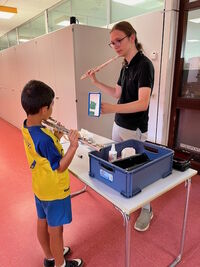 Am Mittwoch, 17. Juli hatten interessierte Schülerinnen/Schüler und Eltern die Möglichkeit die Instrumente auszuprobieren und eventuelle Fragen zu klären. Grundsätzlich ist es auch möglich einen individuellen Termin an einem Mittwochnachmittag auszumachen. Herr Müller, Leiter der Musikschule wird gerne Ihre Fragen beantworten und Sie können bei dieser Gelegenheit gleich einen Blick auf die "Orchesterprobe" werfen.